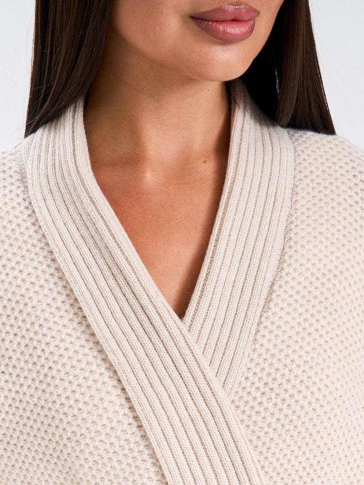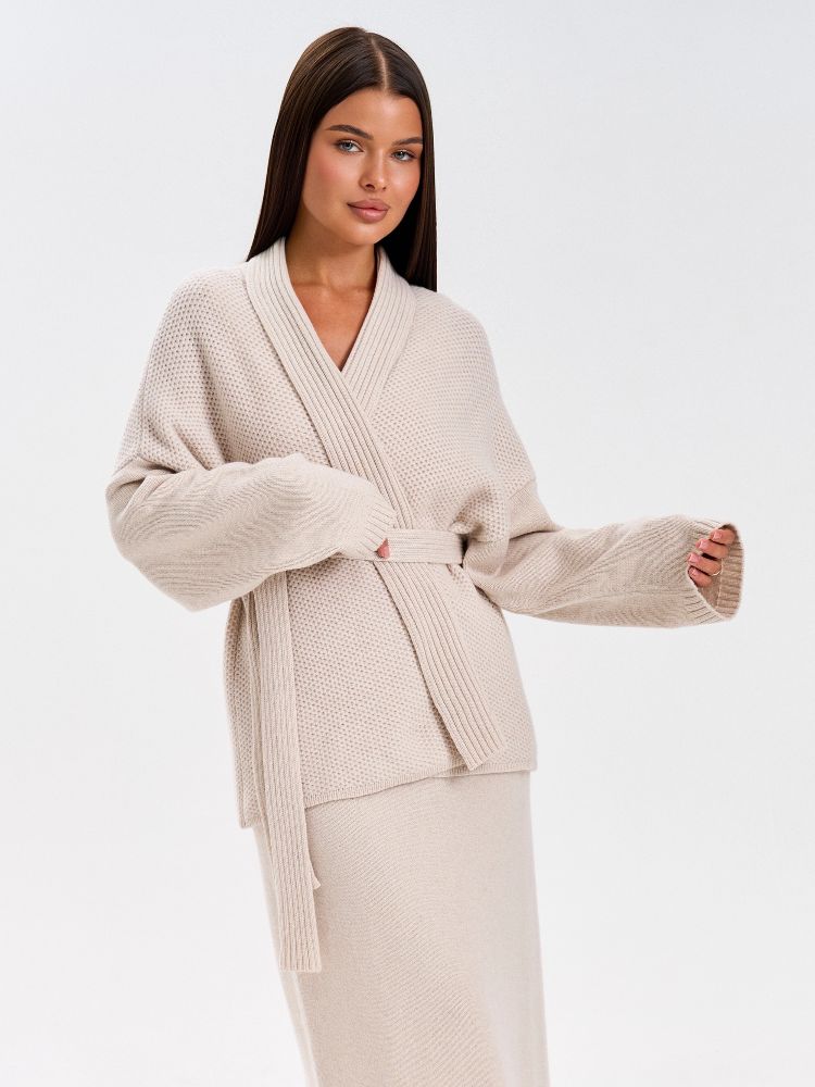 · Кардиган «на запАх», связанный уютной вязкой «соты» с поясом.