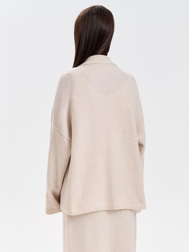 Этот комплект – ваше личное пространство тишины, созданное из кашемира. Расслабленный силуэт, мягкая фактура «соты» и приглушённый молочный цвет – это антистресс в каждой детали и воплощение новой нормы «бережного отношения к себе».